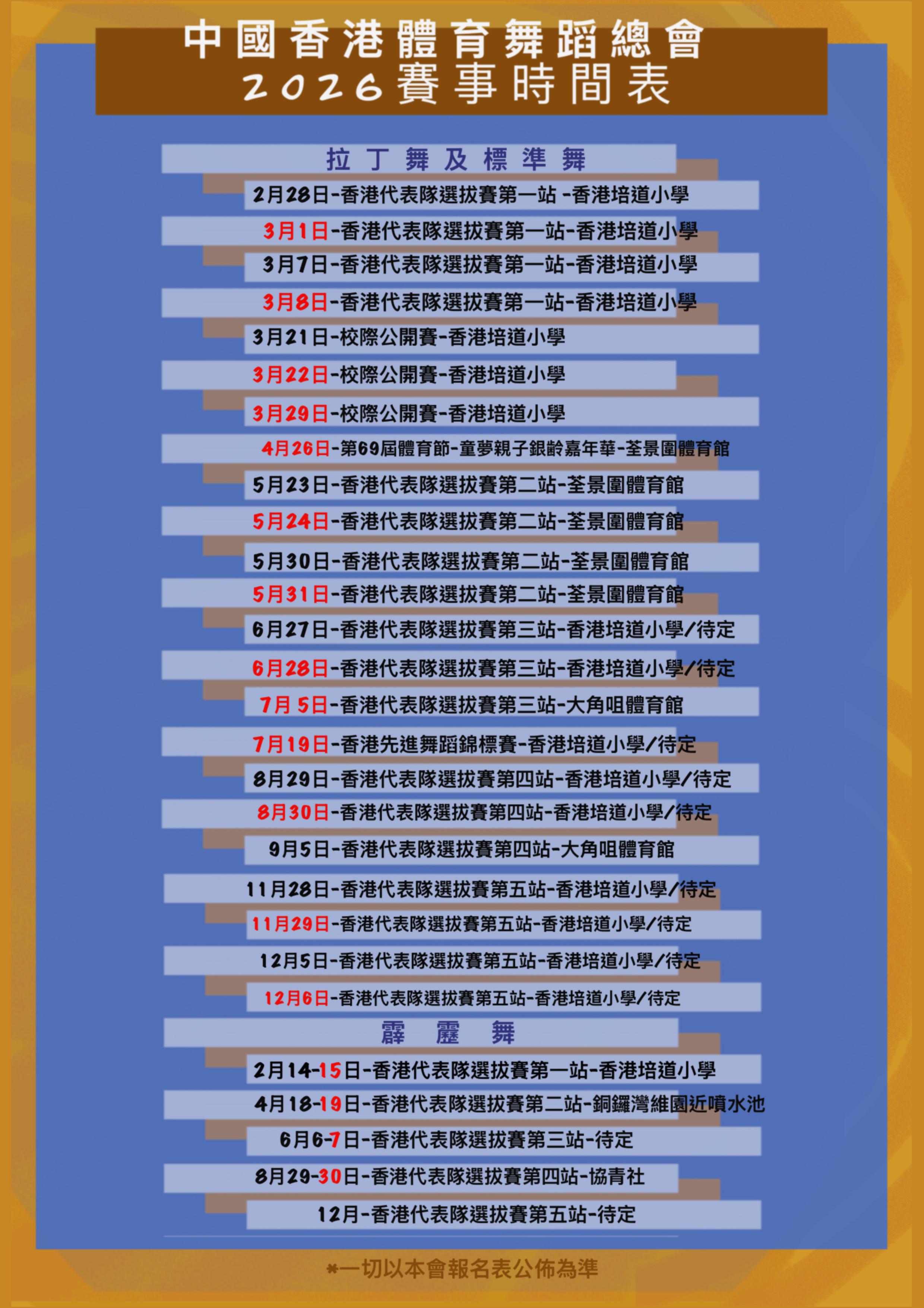 2026 全年賽事時間表 - 香港霹靂舞代表隊選拔賽